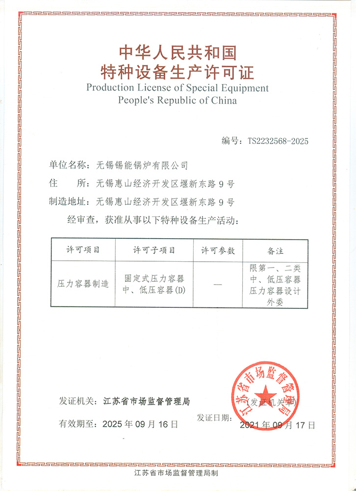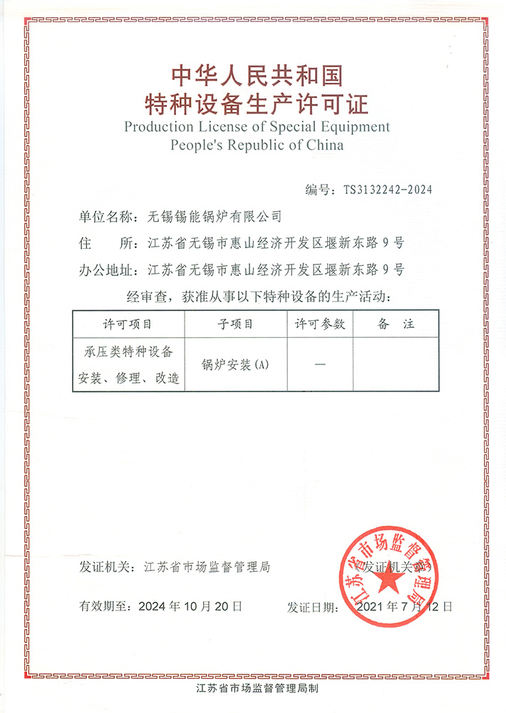 • A級(jí)鍋爐製造許可證