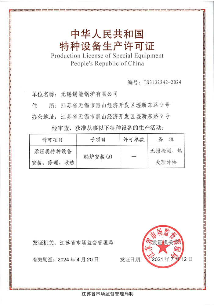 • 鍋爐安裝(zhuāng)許可證